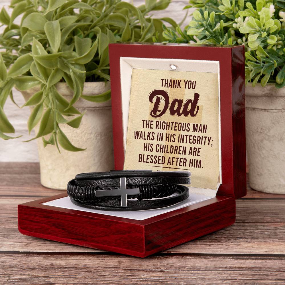 This Men's Cross Leather Bracelet is the perfect keepsake for someone special in your life: your dad! Handcrafted with care, this piece features braided vegan leather and a sleek stainless steel cross